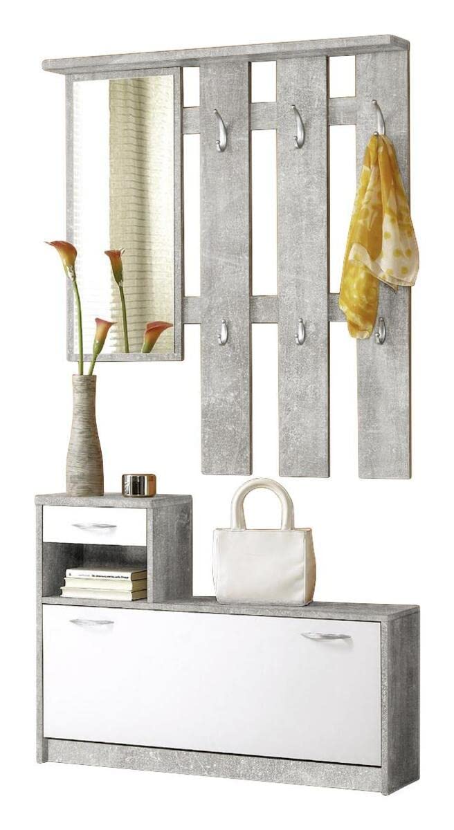 34AVANTI TRENDSTORE - Rodolfo - Mobile da Ingresso, in Laminato di Grigio cemento e Bianco. Misure: LAP 100x191x25 cm
